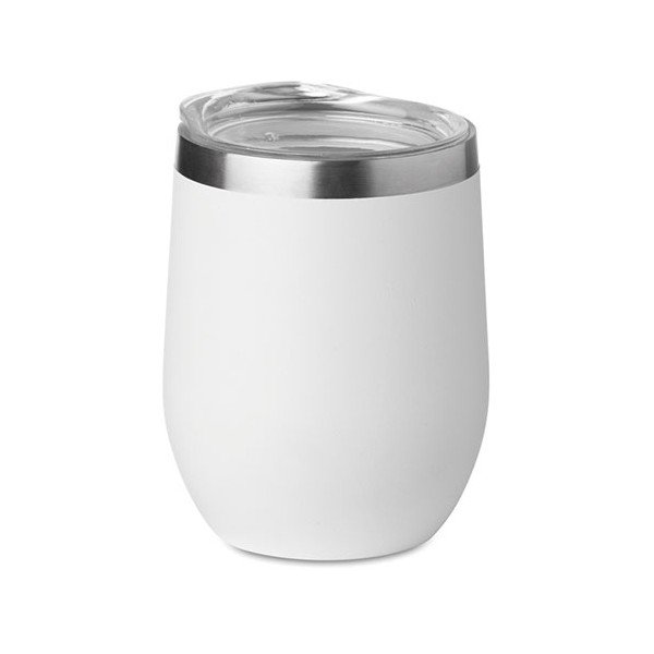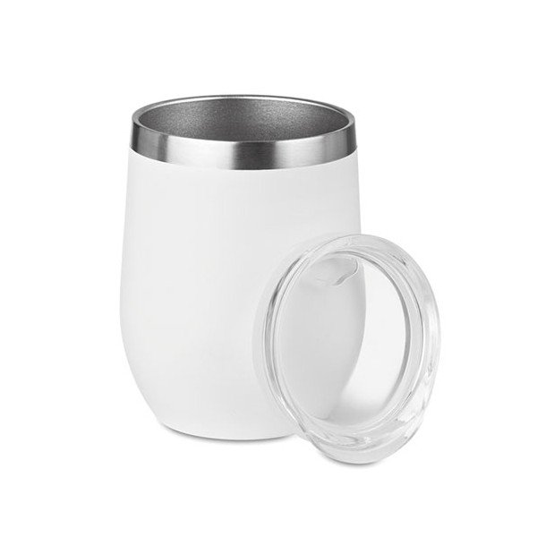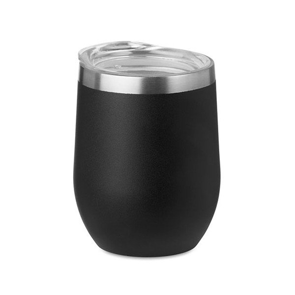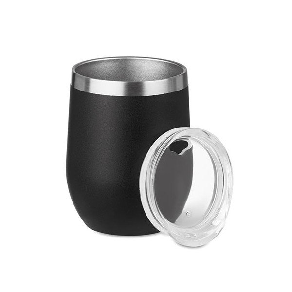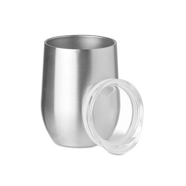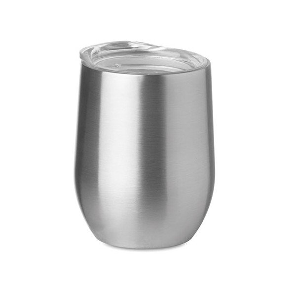 Vaso de 350 ml de pared doble en acero inoxidable 304 18/8. Medidas: Ø9x11 cms. Peso: 224 grs. Composición: Acero inoxidable.