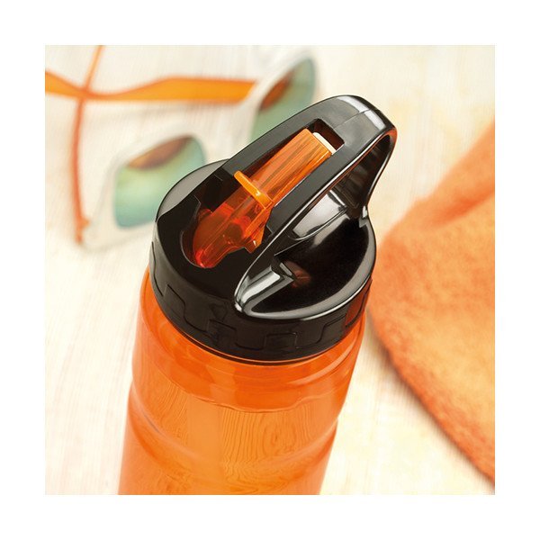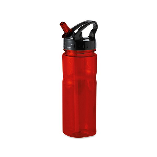 Botella de plástico con pajita plegable por la parte superior. 600ml. Medidas: Ø5x21 cm.