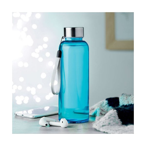 Botella de tritán 500 ml y tapa con cordón. Medidas: Ø6x19.5cms. Peso: 76 gr. Composición: Plástico.