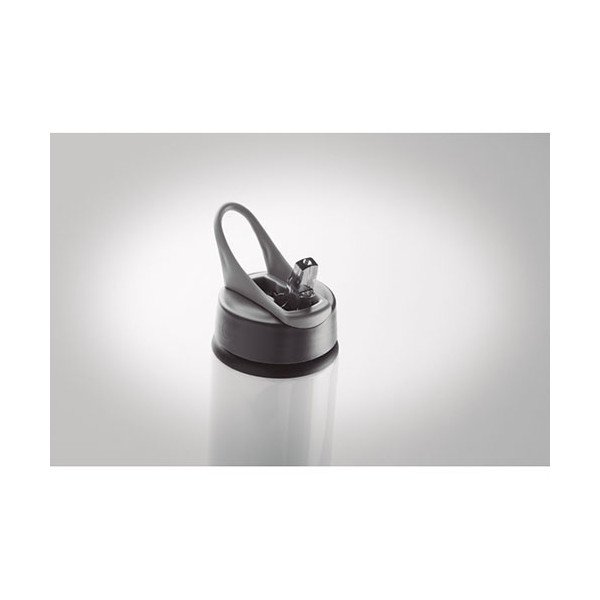 Botella en tritán con detalle de acero inoxidable y boquilla plegable.
