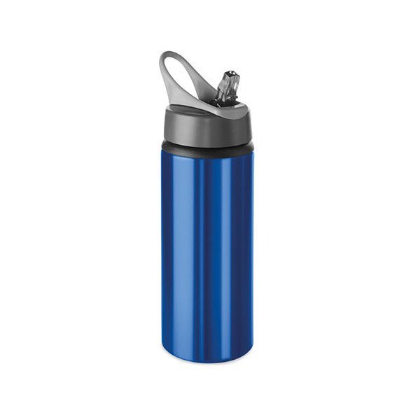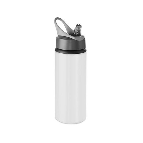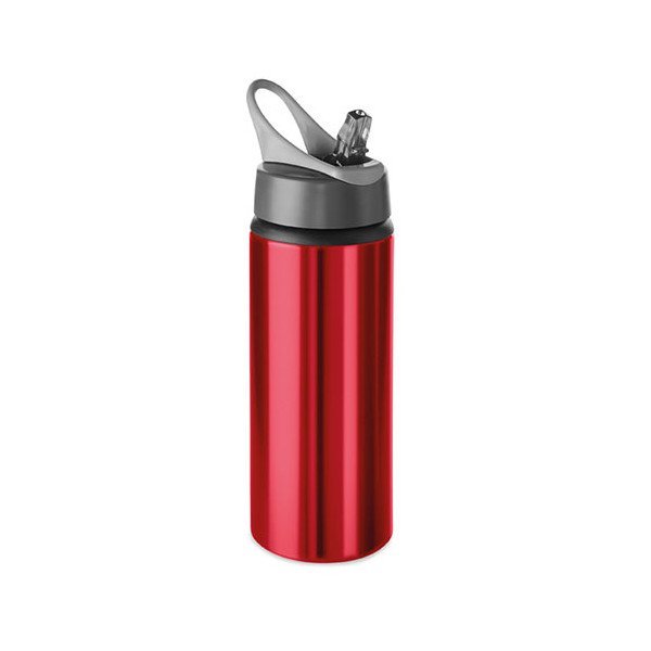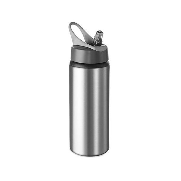 Botella de aluminio de una sola capa con pajita plegable. Capacidad 600 ml. Medidas: Ø7x22 cms. Peso: 160 grs. Composición: Mezcla.