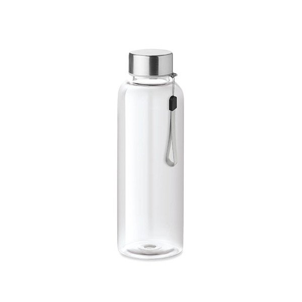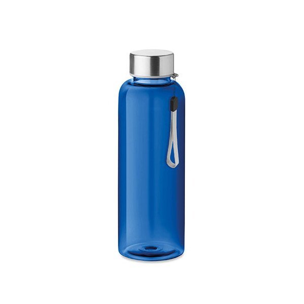 Botella de bebida en RPET. No contiene BPA. Anti fugas. Capacidad: 500 ml. Medidas: Ø6x20,5 cms. Peso: 83 grs. Composición: Mezcla.