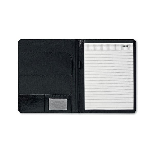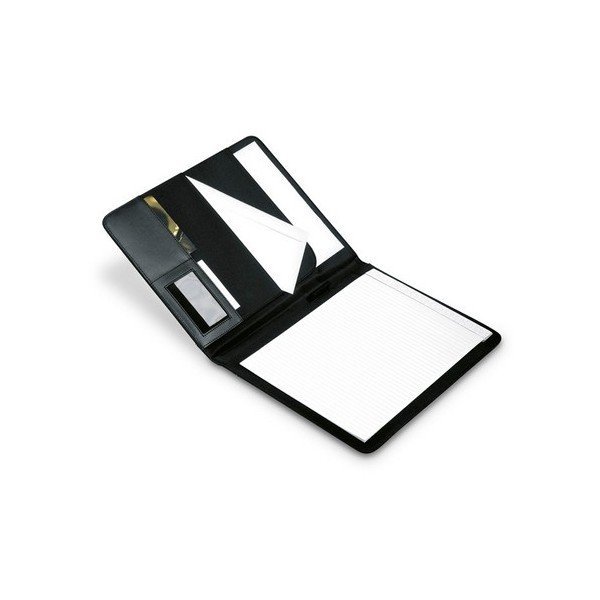 Porta documentos A4 de material PU con placa de metal para el logo. Incluye bloc de notas de 20 hojas. 31,8x25,1x2,6 cm