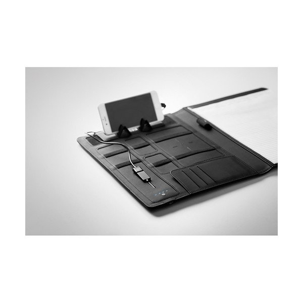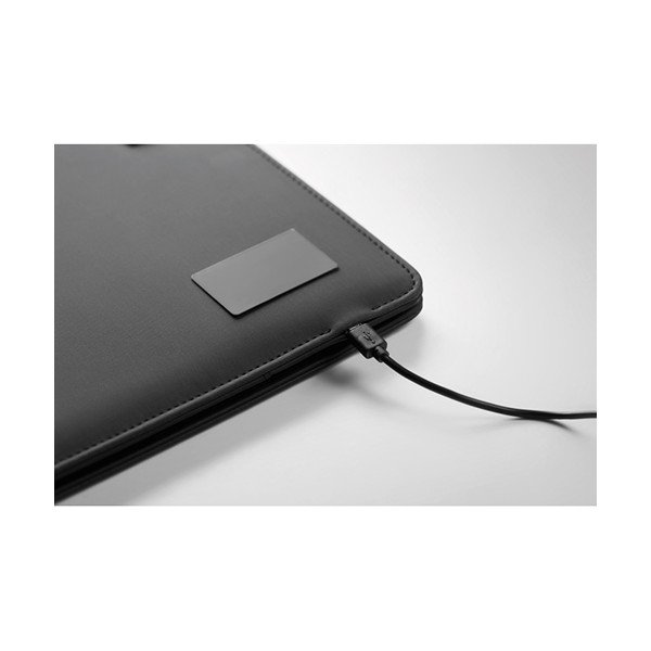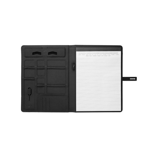 Portadocumentos A5 en PU de cierre magnético con powerbank.
