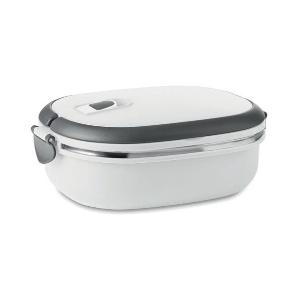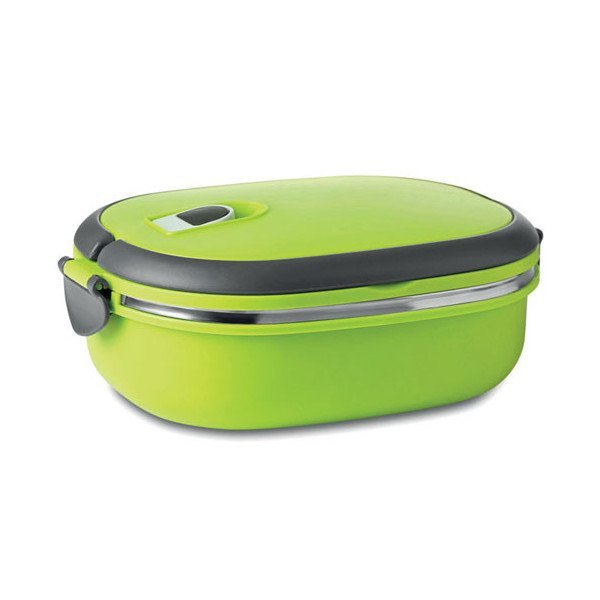 Fiambrera con cierre hermético. Fabricada en PP con interior de acero inoxidable. No apto para microondas. Medidas: 20x14x7 cm. Peso: 288 gr.