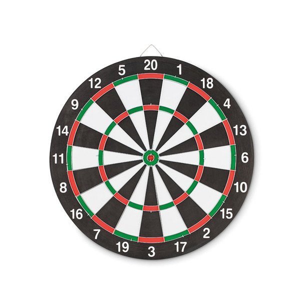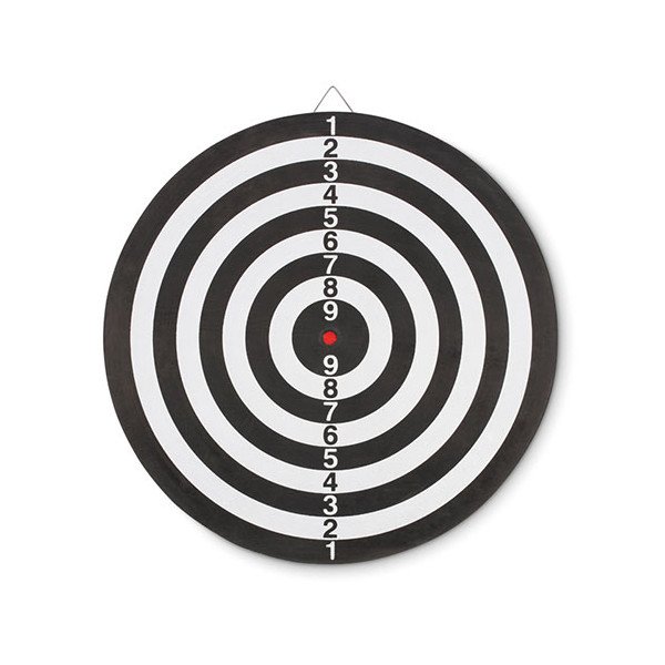 Juego de dardos ligero y compacto para que pueda colgarse en cualquier lugar. Incluye 3 dardos. Medidas: Ø41,5x1,2 cms. Peso: 1,41 Kgs. Composición: Papel.