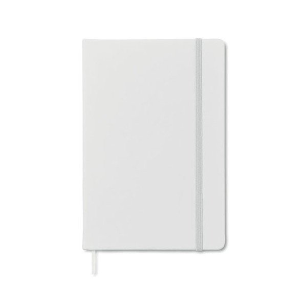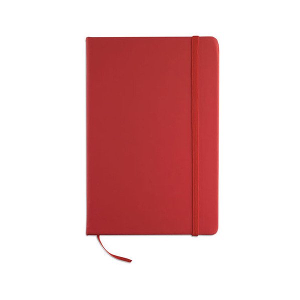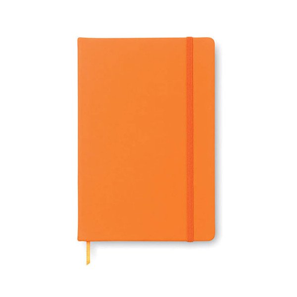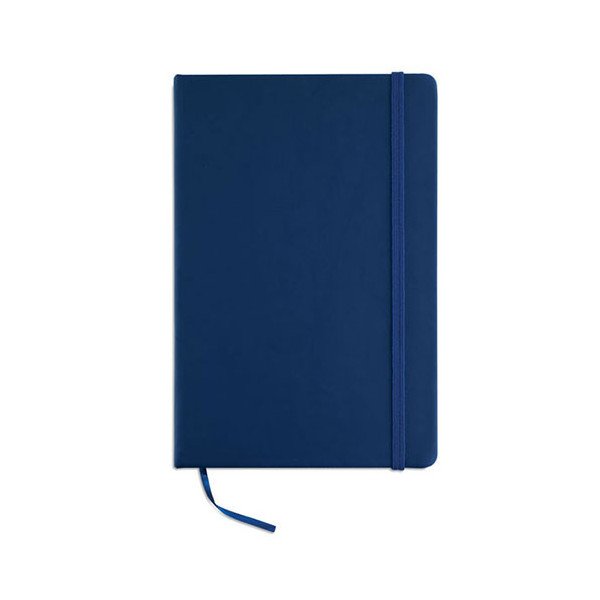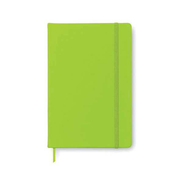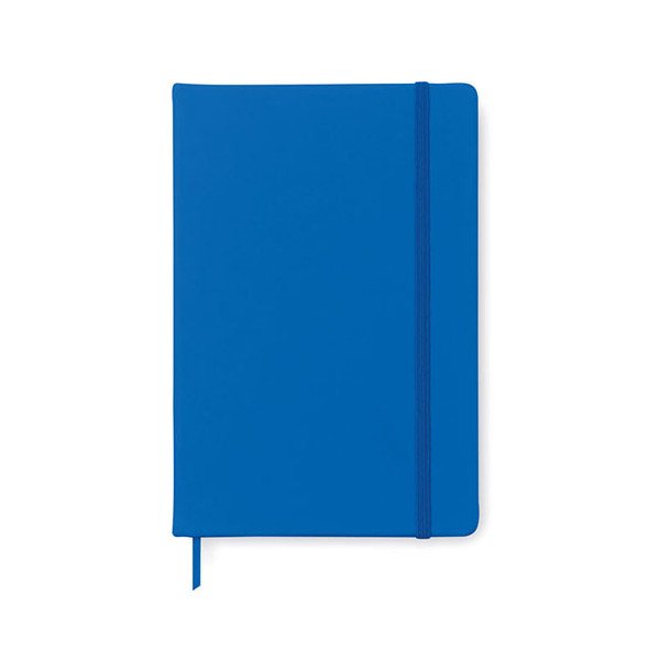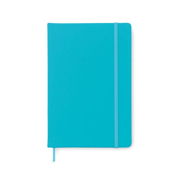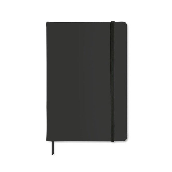 Libreta de notas A5 con 96 hojas y tapa blanda de PU. Banda elástica para el cierre. Medidas: 21,3x14x1,5 cm