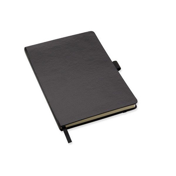 Libreta A6 con tapa rígida, 72 páginas de papel rayado, banda elástica y marcapáginas. Incluye bolígrafo con tinta azul. 14,5x10x1,2 cm