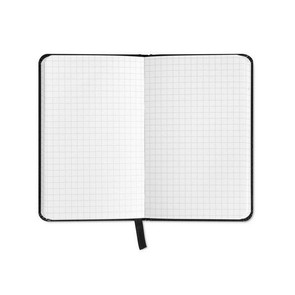 Libreta con 96 páginas de papel cuadriculado y banda elástica.