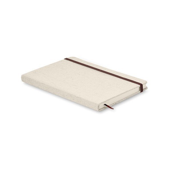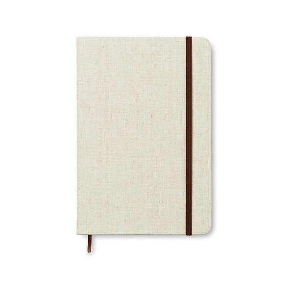 Cuaderno de canvas A5 de 96 páginas rayadas. Incluye banda elástica para el cierre y cinta. Medidas: 14,5x1,4x21 cm. Peso: 18 gr.