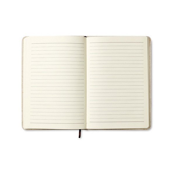 Libreta con hojas rayadas de papel reciclado y tapa de corcho.