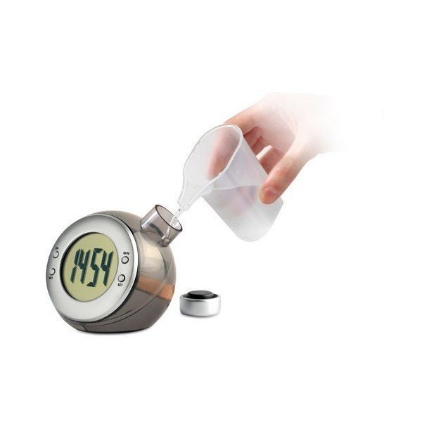 Reloj con gran pantalla de LCD. No se requieren pilas para que funcione, ¡sólo líquido! Medidas: 10,6x10,4x9,1 cm
