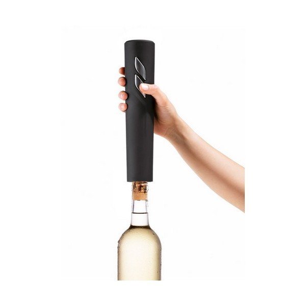 Abridor de botellas eléctrico. Carcasa realizada en ABS con acabado negro mate. Incluye corta cápsulas. Funciona con 4 pilas AA no incluidas. Medidas: 7x5,5x27,5 cm