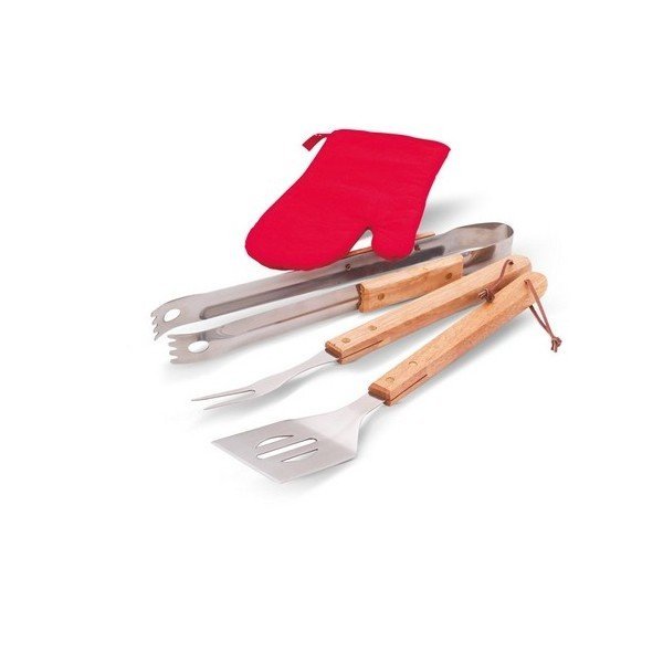 Maletín de aluminio con 3 utensilios de barbacoa en acero inoxidable.