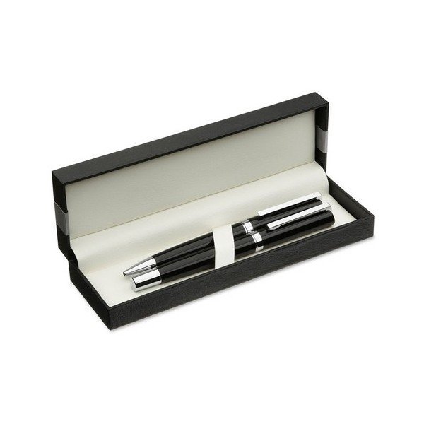 Set de bolígrafo giratorio y roller en caja de regalo.