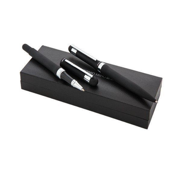 Set de bolígrafo con tinta azul y roller con tinta negra.