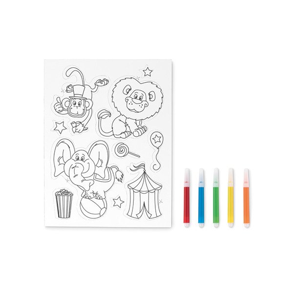 Adhesivos magnéticos para colorear. Incluye 5 rotuladores. Medidas: 20x27 cms. Peso: 120 gr.