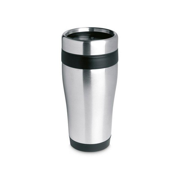 Taza térmica en acero inoxidable con tapa. Capacidad de 455 ml. Medidas: Ø8,4x17 cm