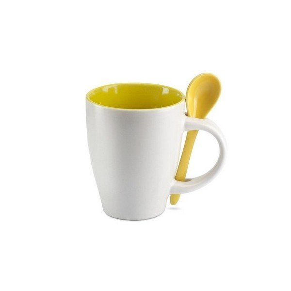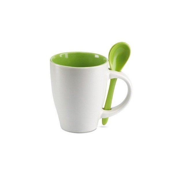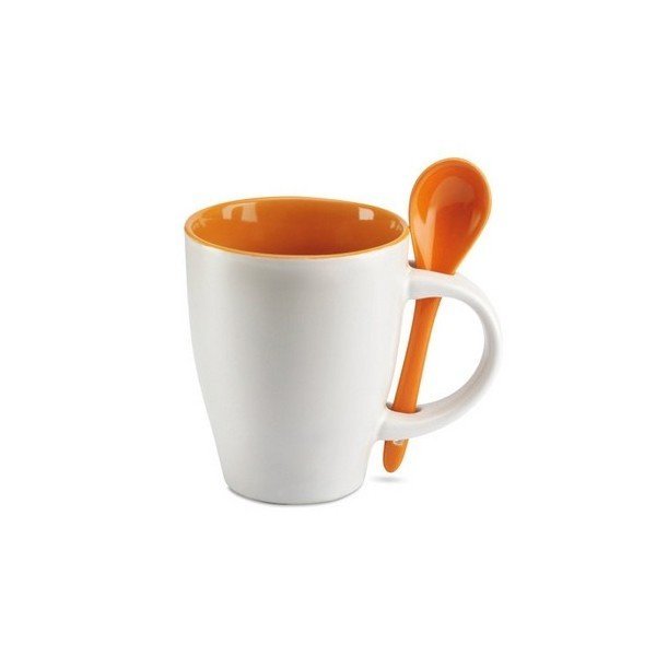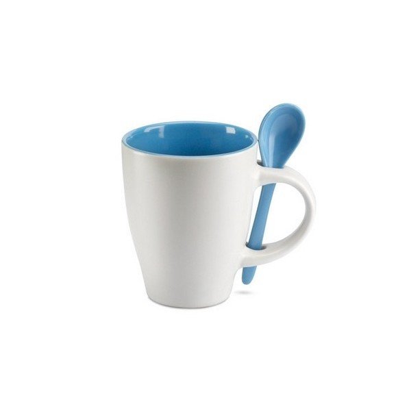 Taza de cerámica bicolor con cuchara a juego. 250 ml. Medidas: Ø10x12 cm